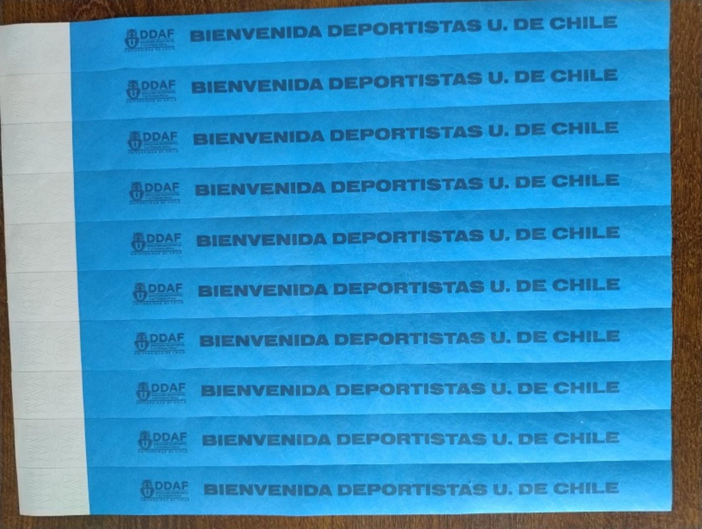 Pulsera de Tyvek®, material similar al papel, difícil de romper y desgarrar. Resistente al agua y al paso del tiempo. Excelente para eventos de 24 horas.